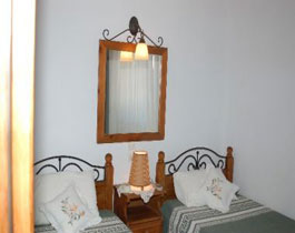 modern ingericht met twee losse bedden, kitchenette, badkamer